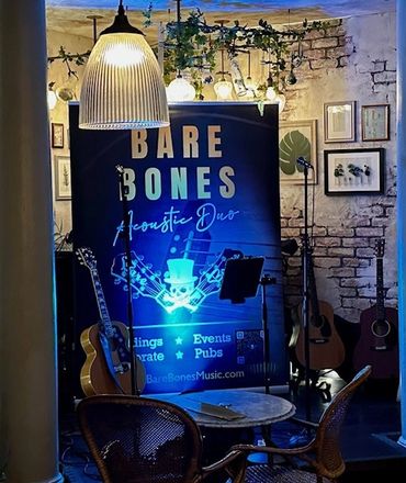 With a fully mobile powered PA system and equipment, we can bring our Bare Bones acoustic set to just about anywhere, indoors or outdoors, with plenty of volume to reach audiences of 200+.